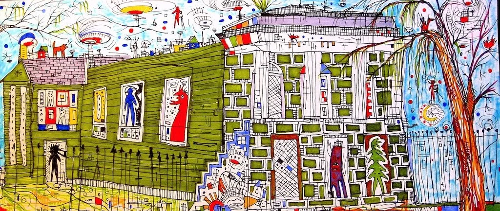 My art appears as a journal of personally illustrated characters and symbols guided by intuition. These signs are often the depictions of monsters, machines, nature, home, and self. They evolve and branch from each other like the roots from a tree. The product is a live recording depicting the outward path of a single human spirit. I embrace the coincidence and its endless overlapping of metaphorical connections associated with my reality.